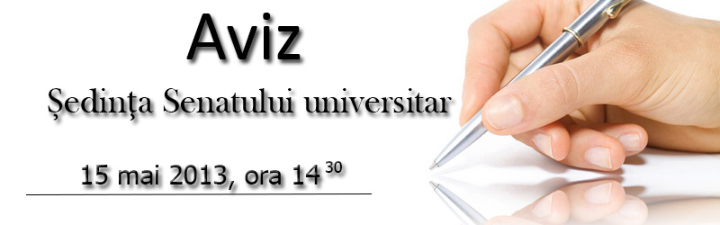 Vă invităm la şedinţa Senatului universitar, care va avea loc în data de 15 mai 2013, ora 14.30, sala Senatului
